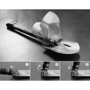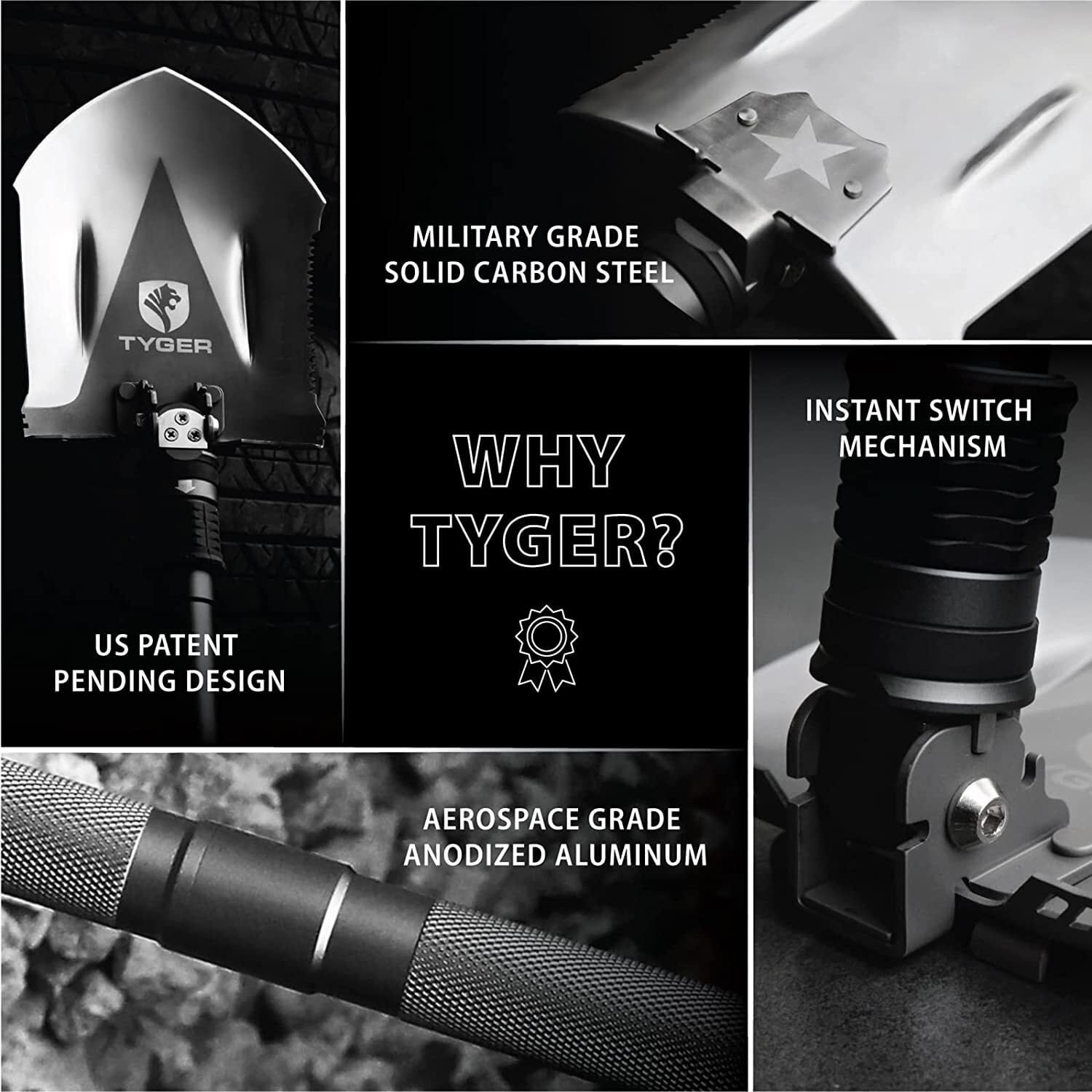 米国特許出願中のシャベルは、米軍でも採用される基準のソリッドカーボンスチールを使用。