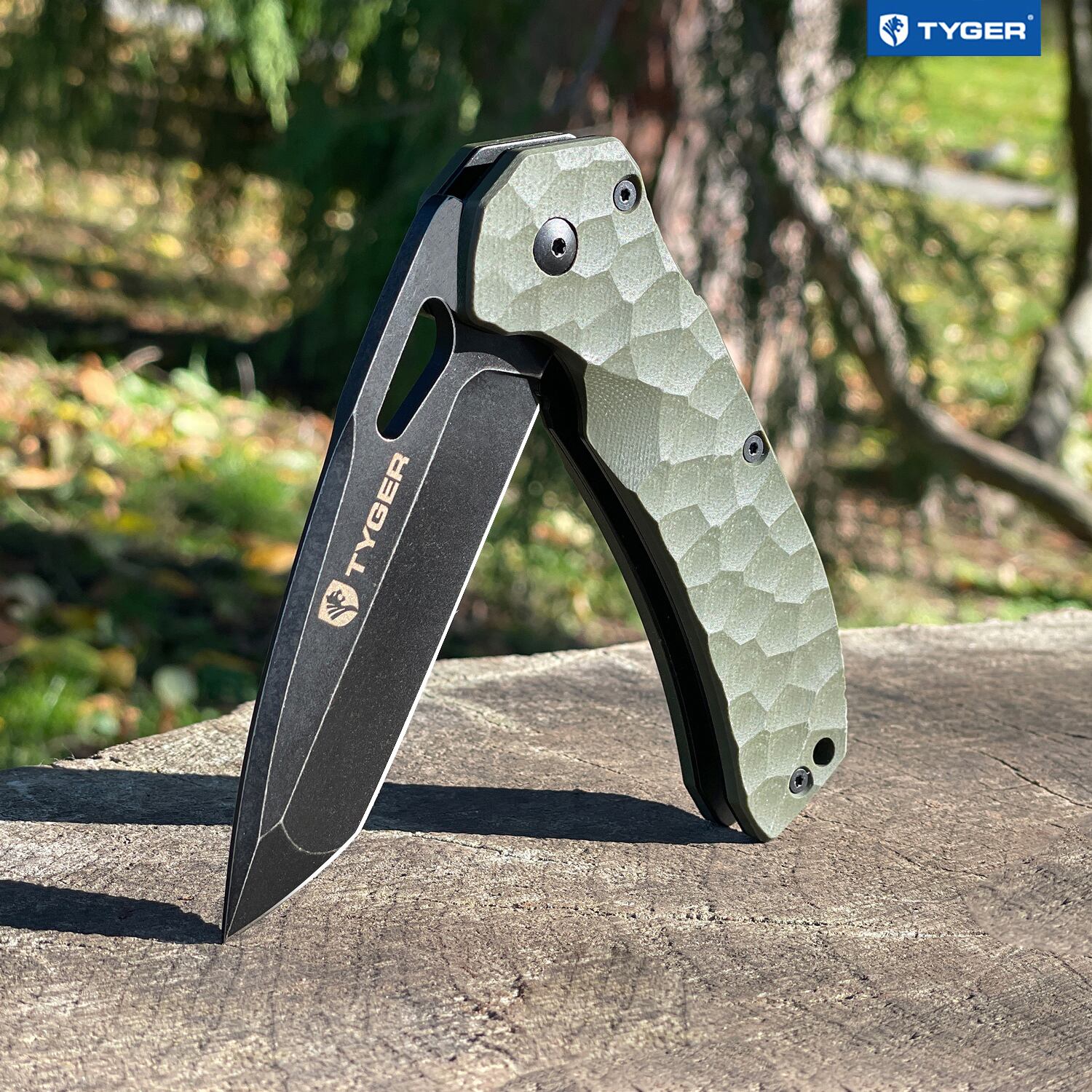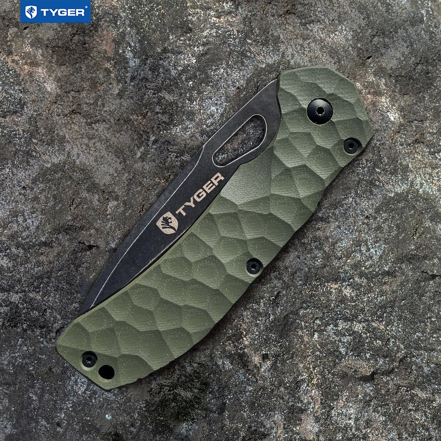 狩猟やキャンプなど、さまざまなシーンで利用可能。手に快適なフィット感を感じるように設計された4.8インチのチゼルロックパターンのハンドルで包まれた3.6インチのブレード