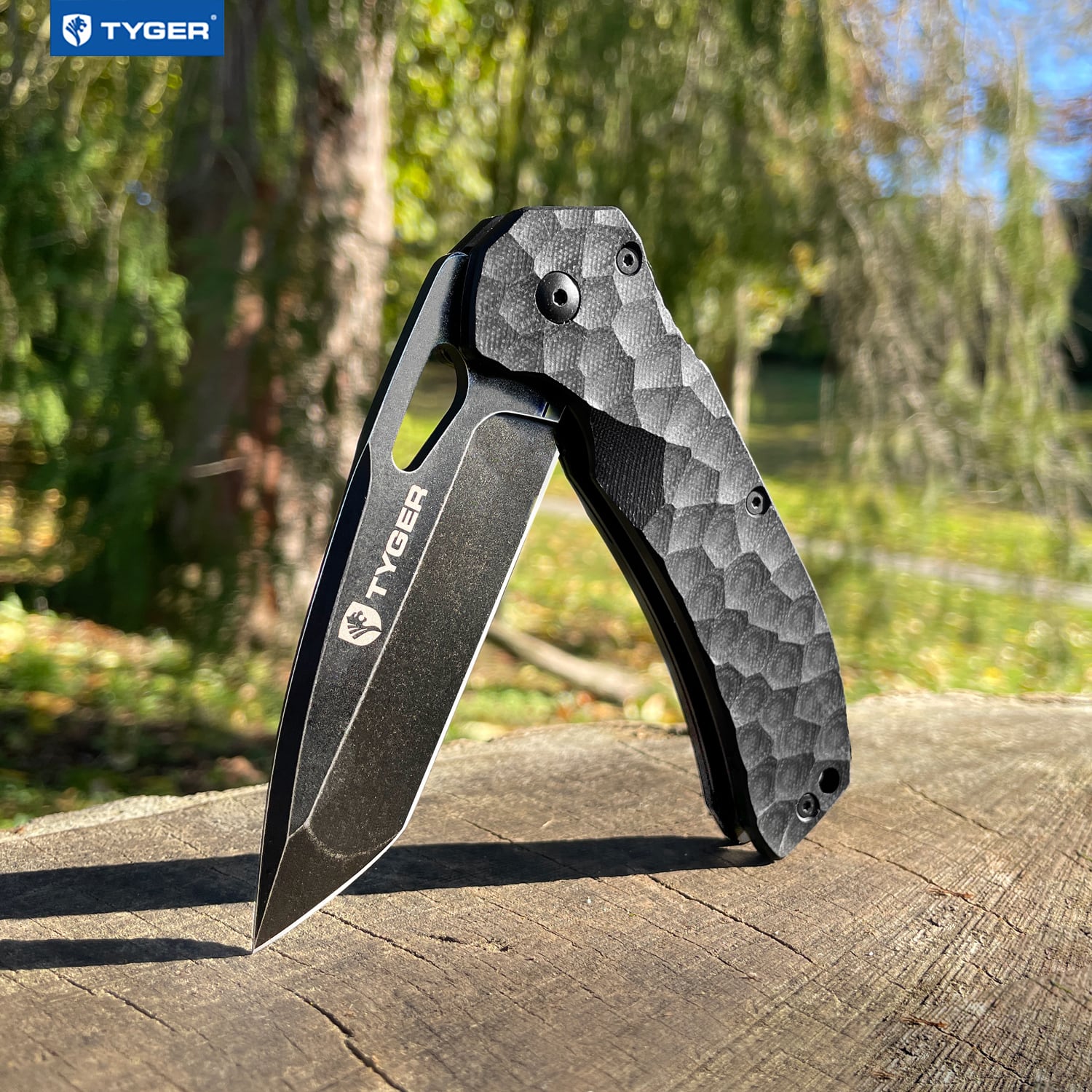 狩猟やキャンプなど、さまざまなシーンで利用可能。手に快適なフィット感を感じるように設計された4.8インチのチゼルロックパターンのハンドルで包まれた3.6インチのブレード